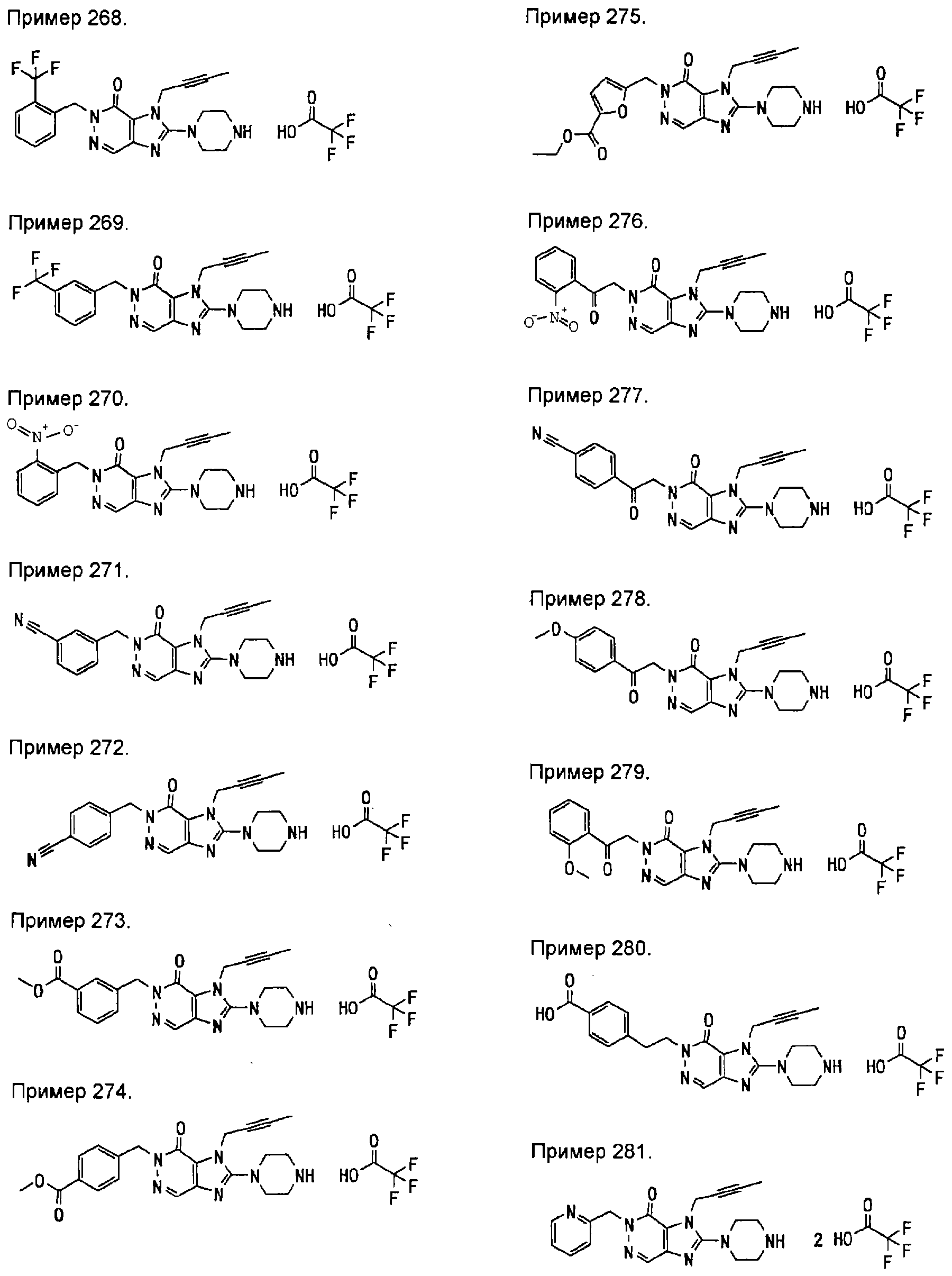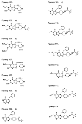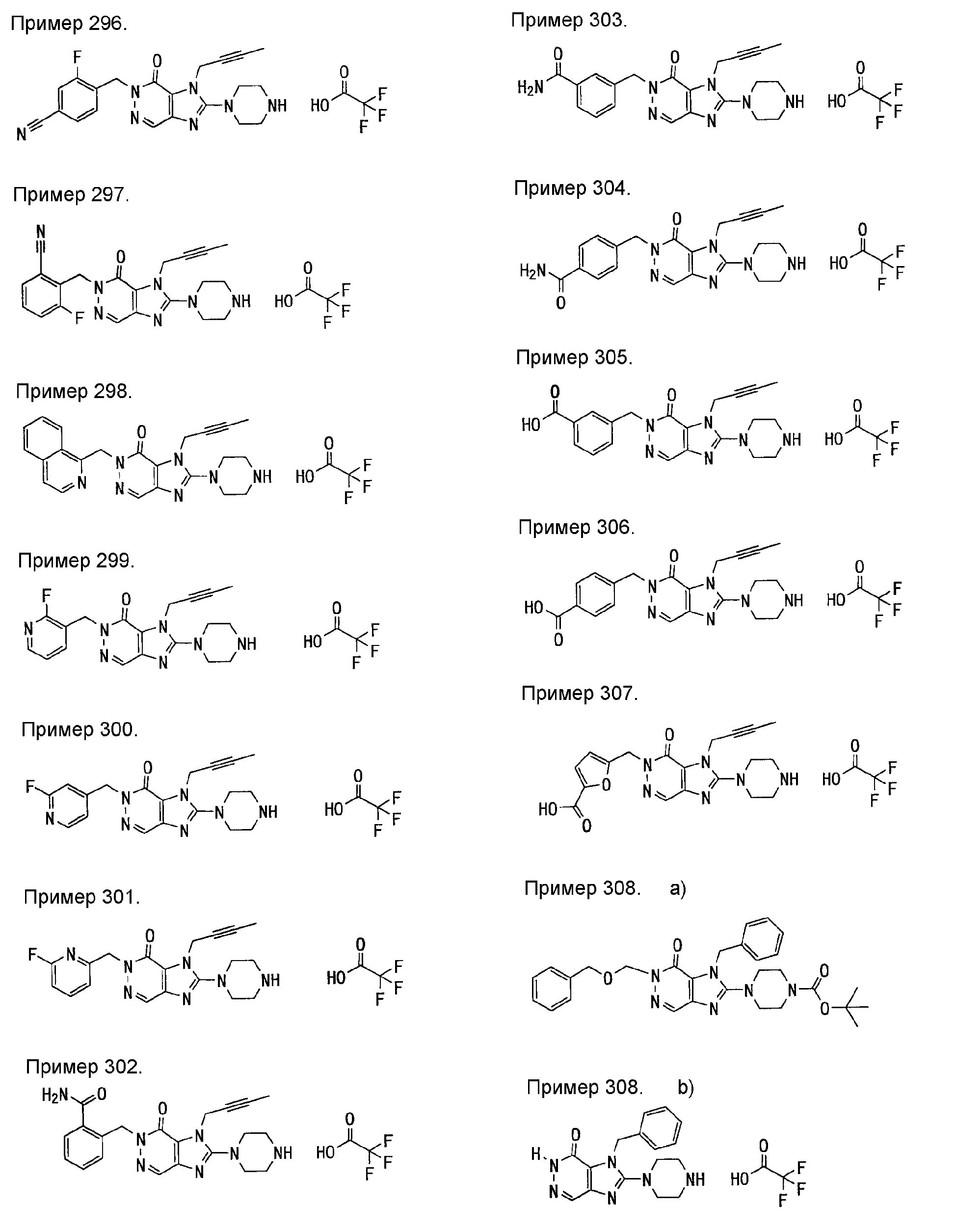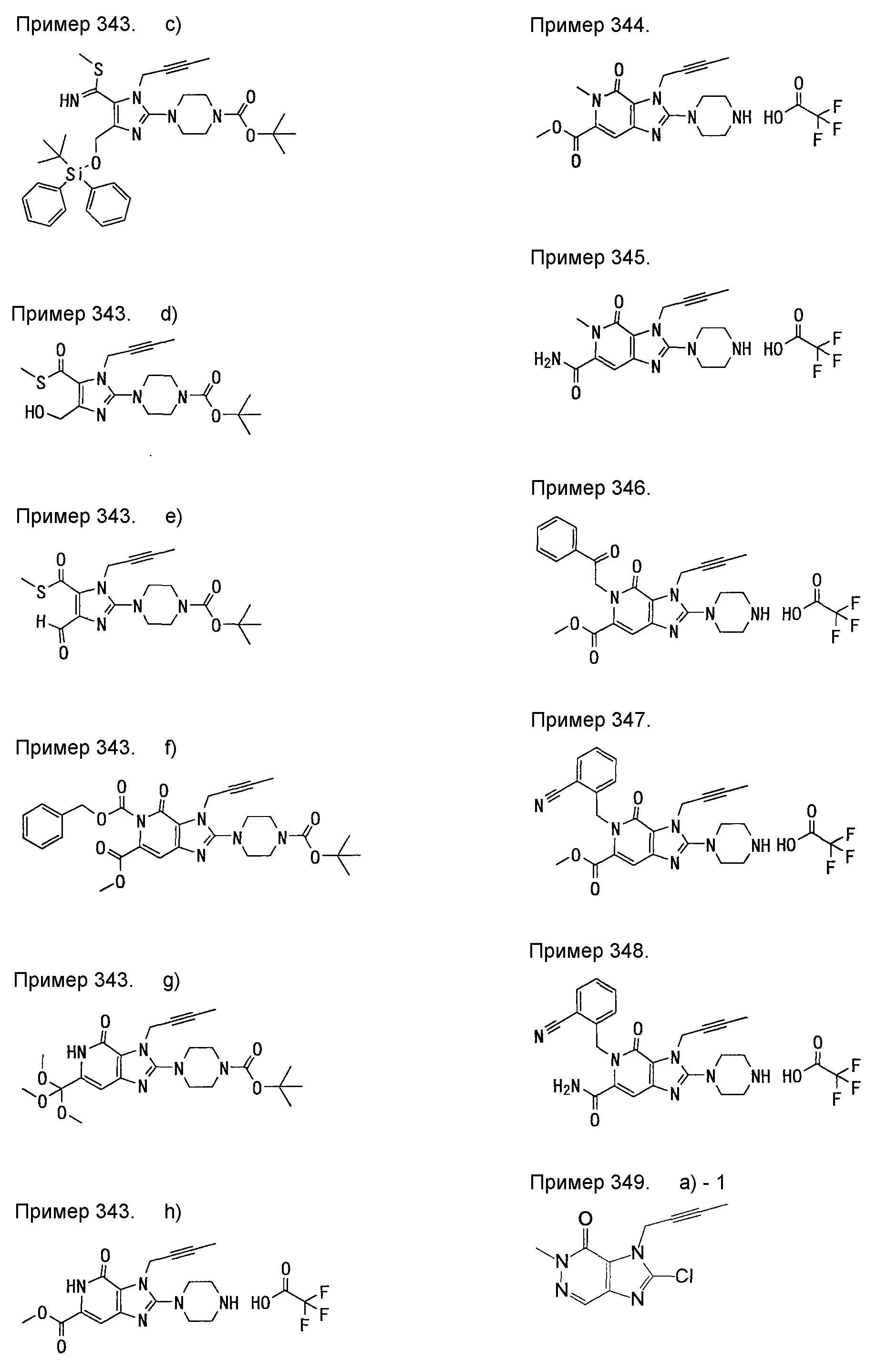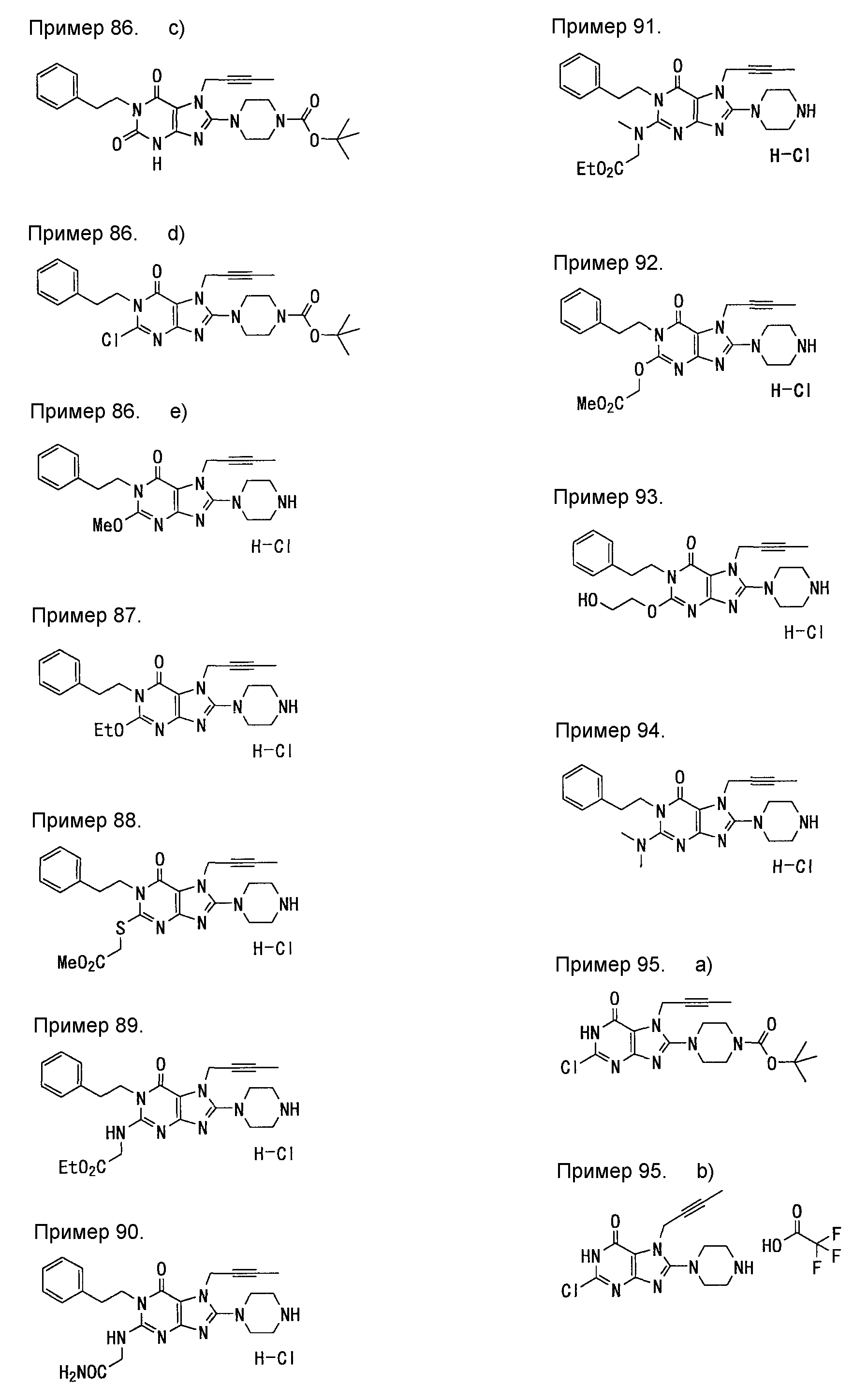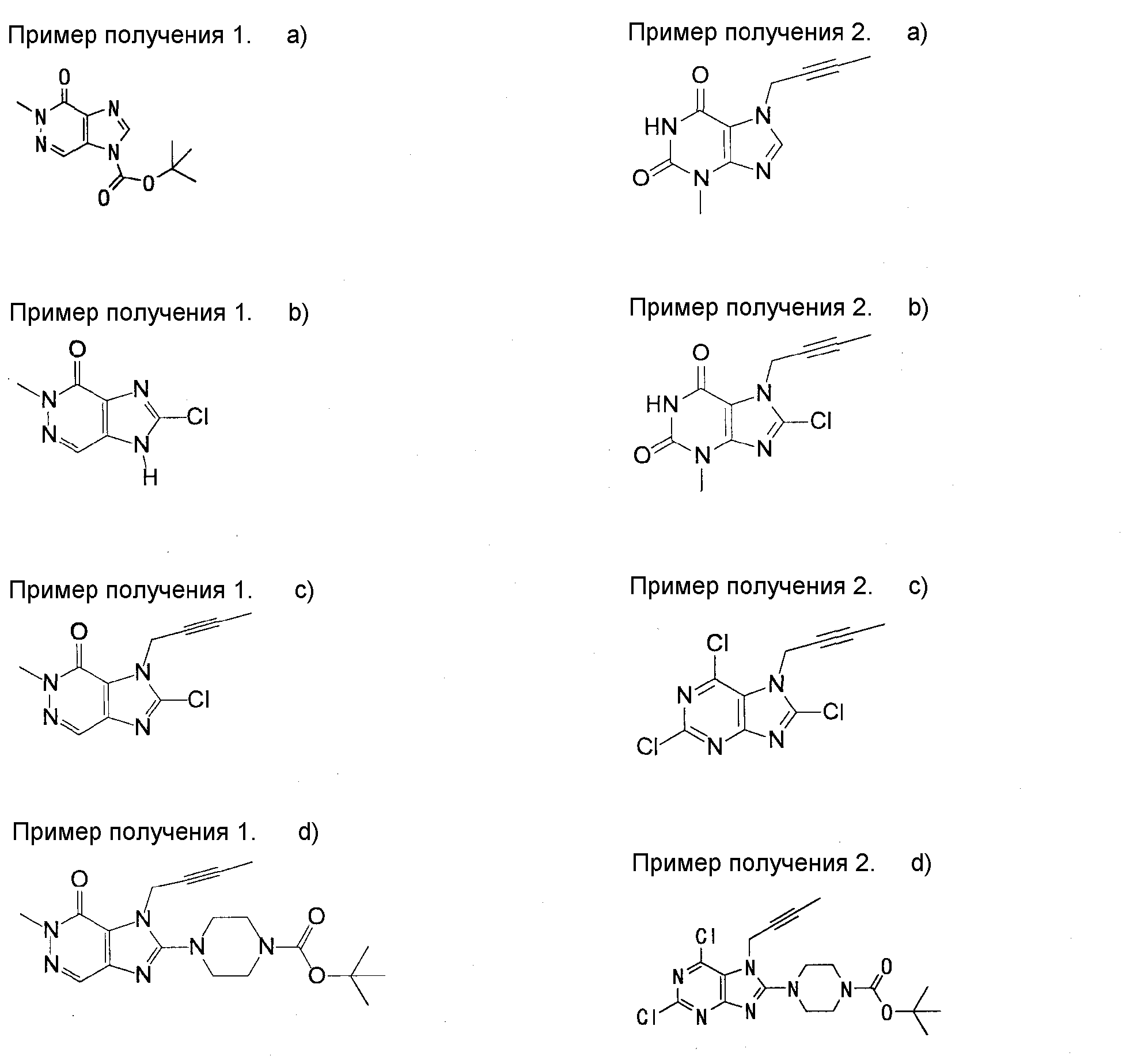 Структурные формулы для соединений в описанных выше примерах получения и в примерах, показаны далее.