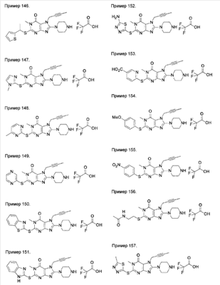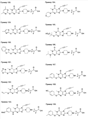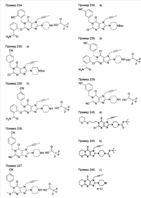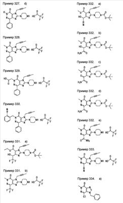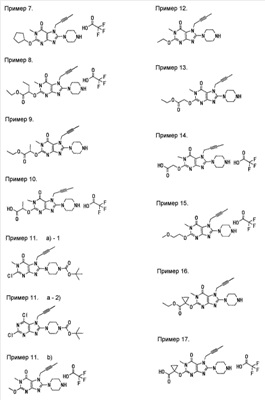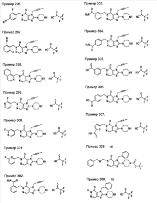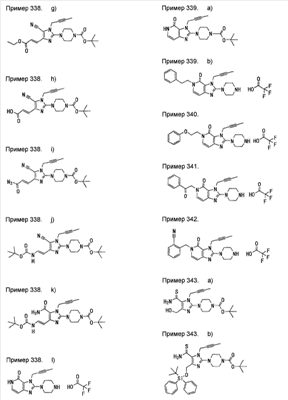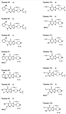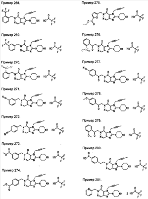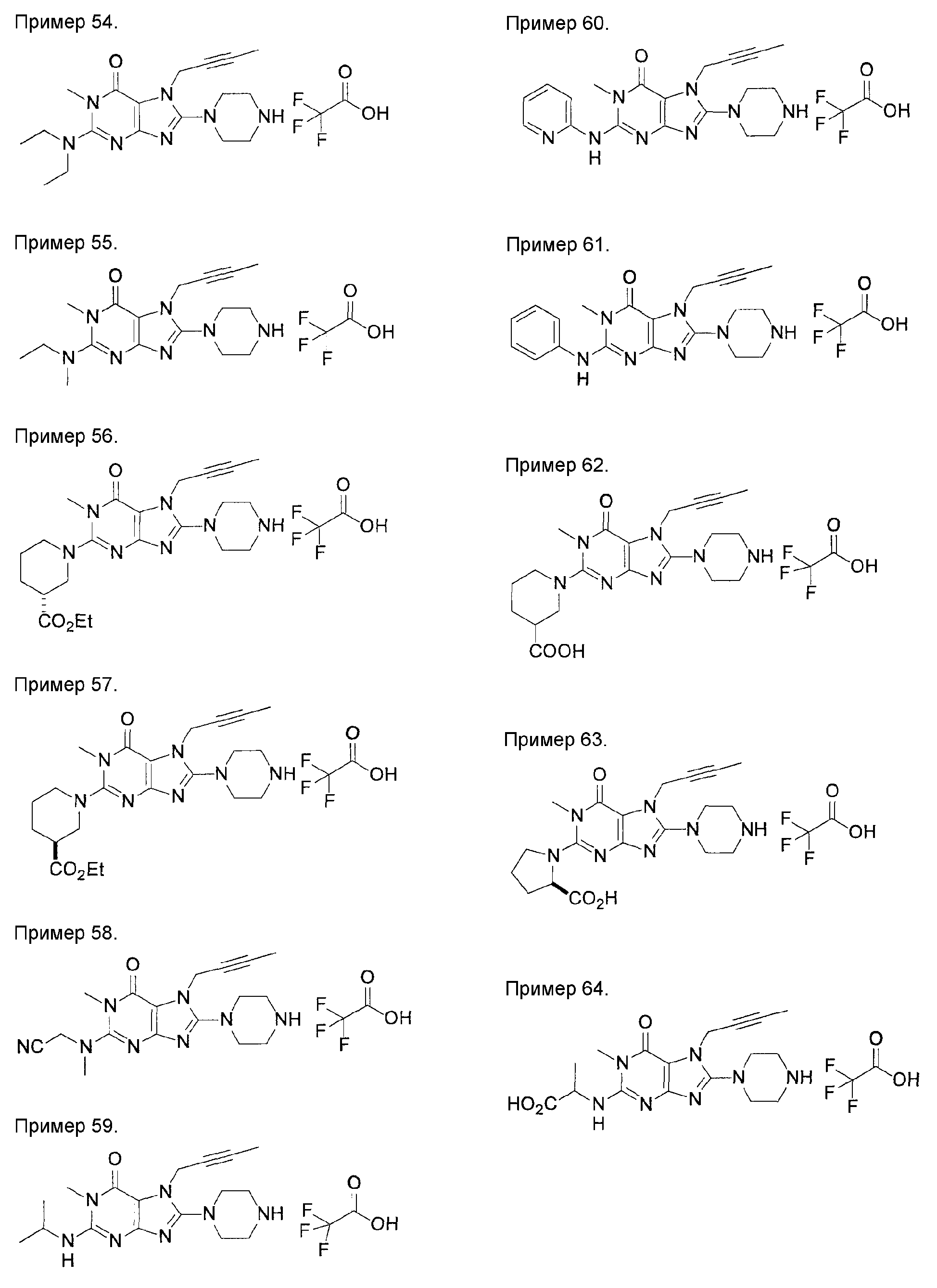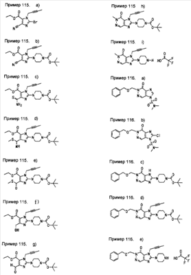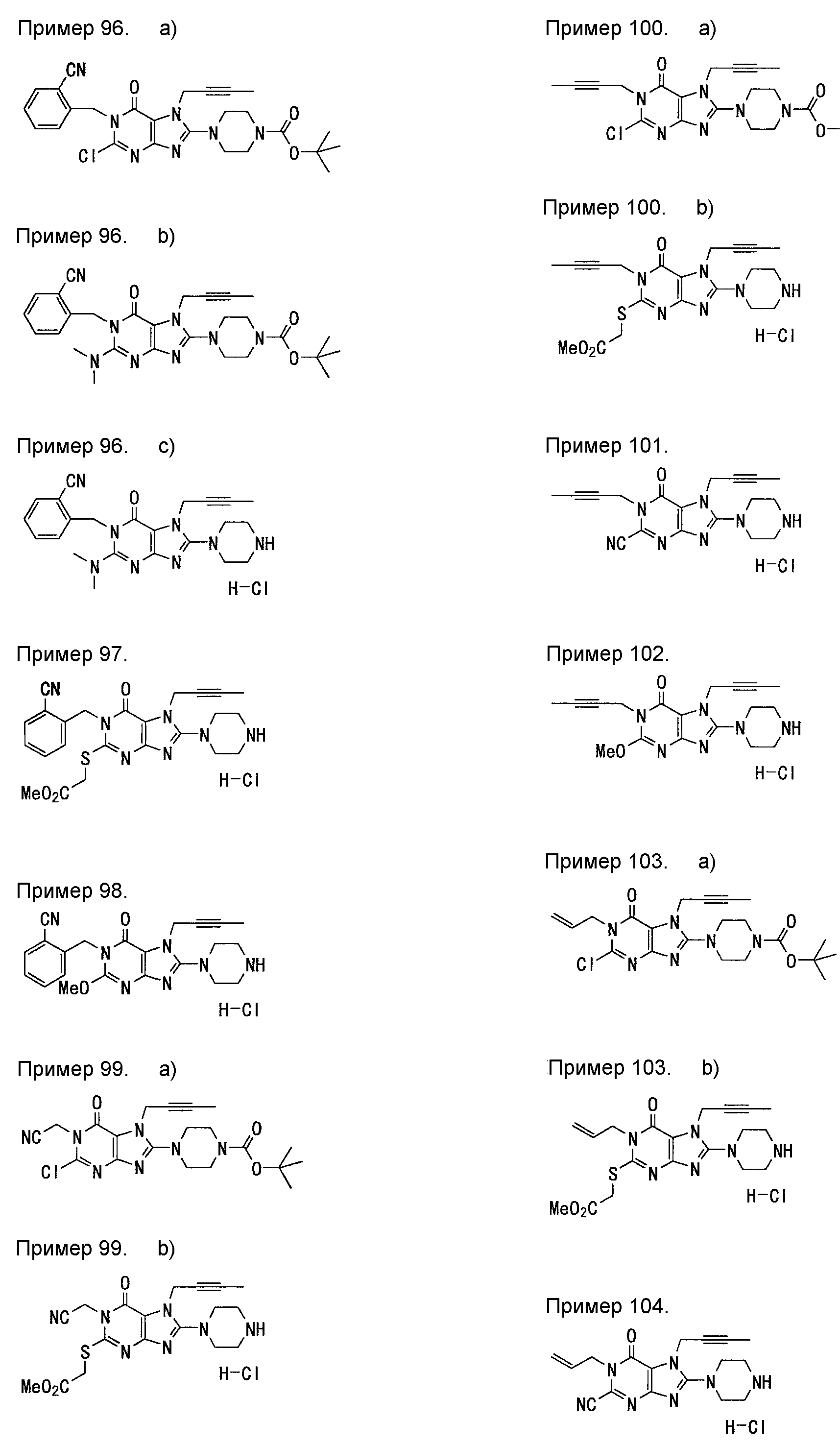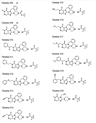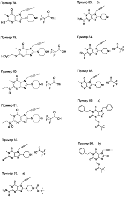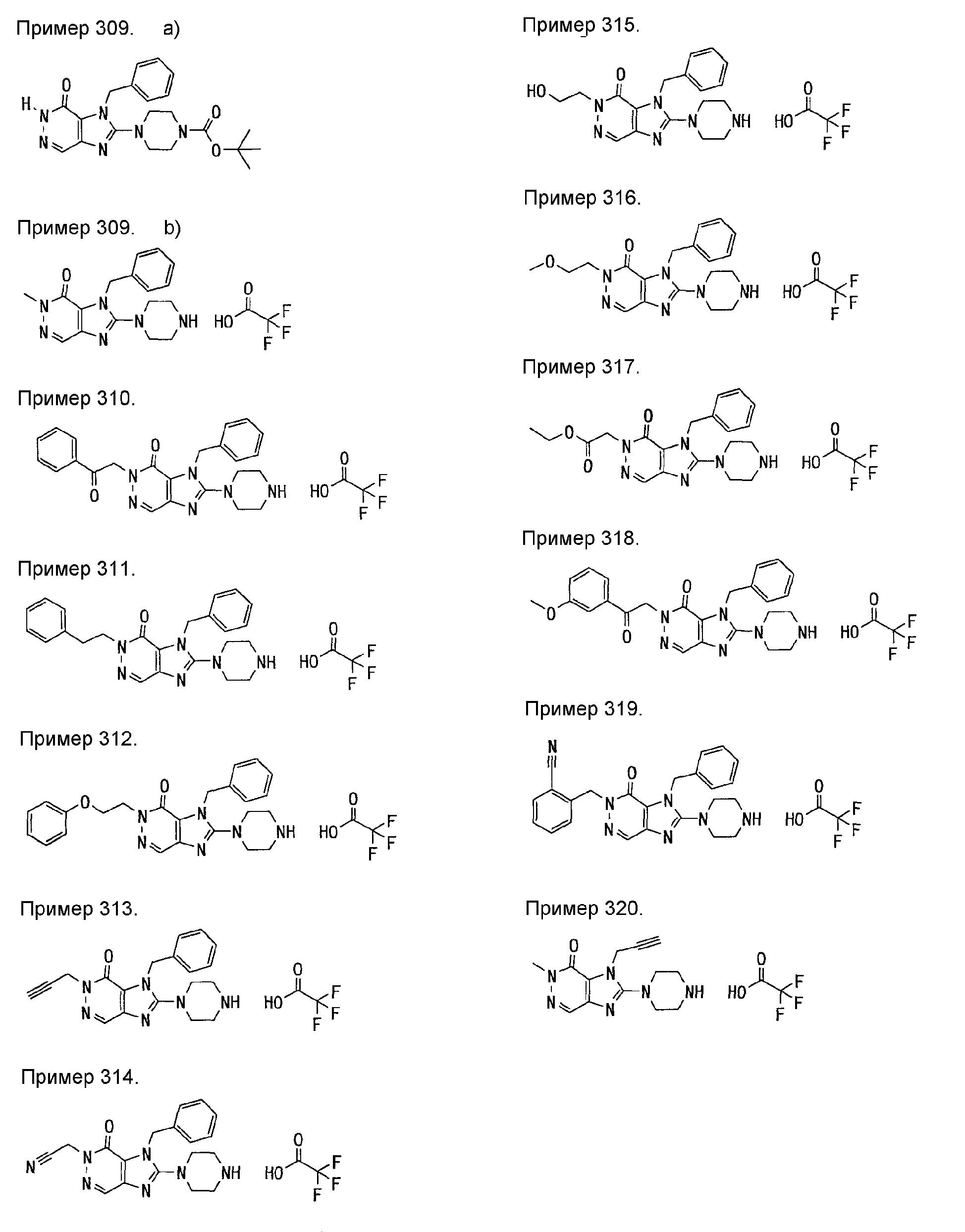 Структурные формулы для соединений в описанных выше примерах получения и в примерах, показаны далее.
