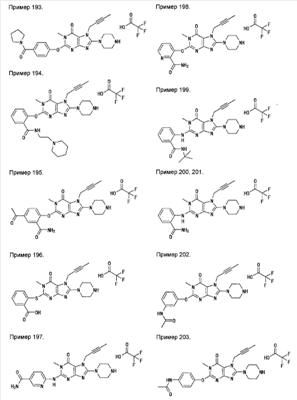 2-[7-(2-бутинил)-1-(2-цианобензил)-6-оксо-8-(пиперазин-1-ил)-6,7-дигидро-1Н-пурин-2-илокси]бензамид.