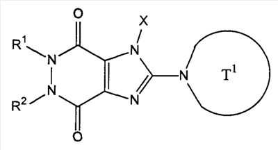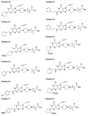 Некоторые DPPIV ингибиторы описаны в публикации патента США No. 2002/0161001; международной публикации WO 03/004496 и в публикации патента США No. 2002/0198205. Однако нет данных об ингибиторе DPPIV с гипоксантиновой или имидазопиридазиноновой структурой.
