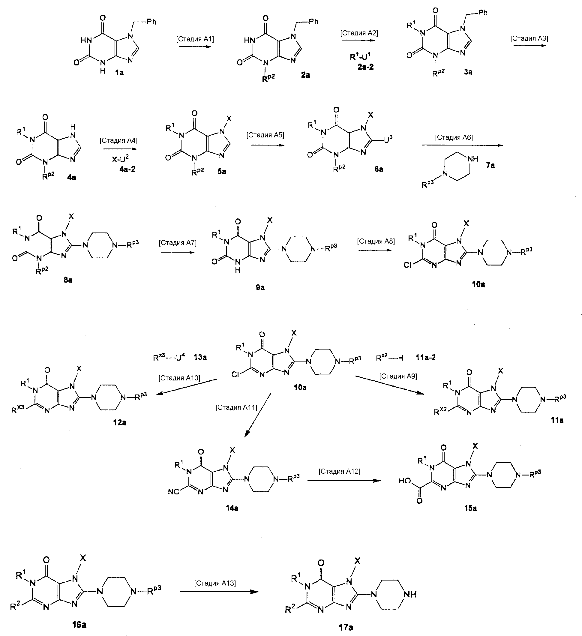 А2 и RA, каждый независимо, представляют собой атом водорода, атом галогена, цианогруппу, C1-6 алкильную группу, С3-8 циклоалкильную группу, С2-6 алкенильную группу, С2-6 алкинильную группу, С6-10 арильную группу, 5-10-членную гетероарильную группу, 4-8-членную гетероциклическую группу, 5-10-членный гетероарил C1-6 алкильную группу, С6-10 арил С1-6 алкильную группу, или С2-7 алкилкарбонильную группу;