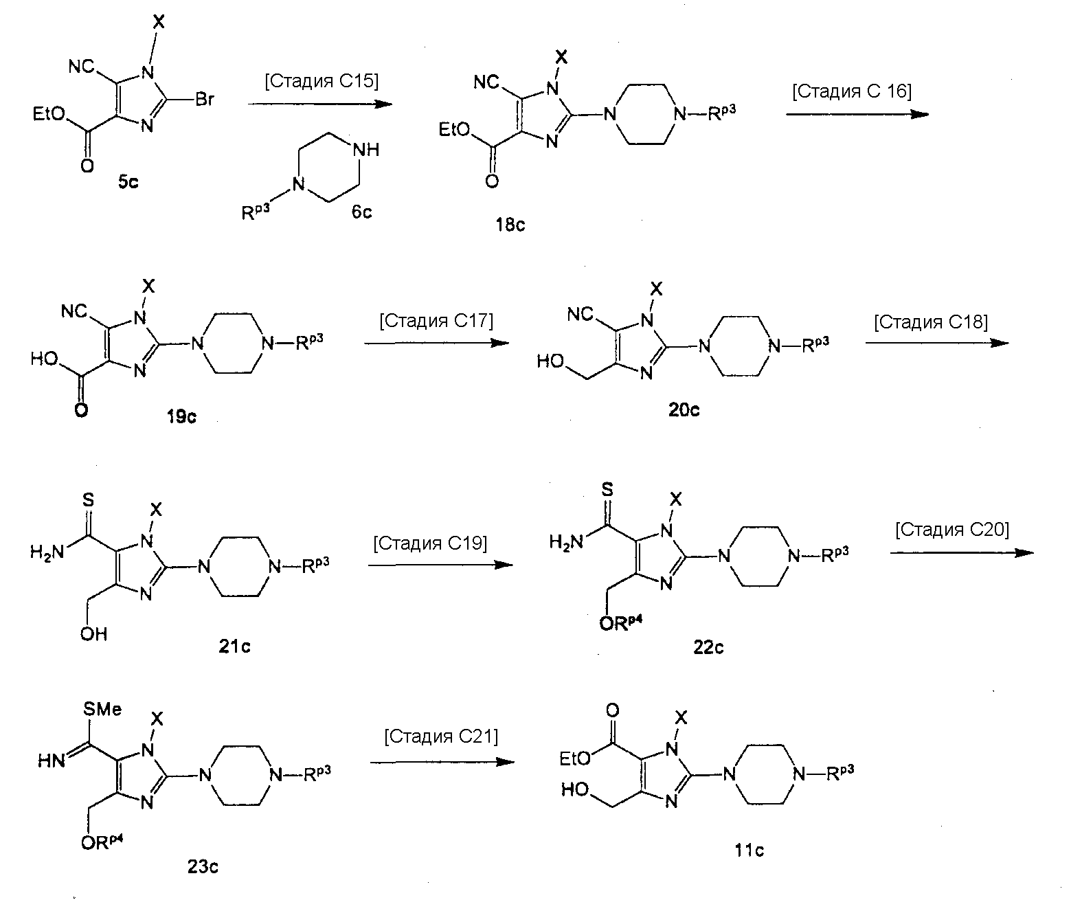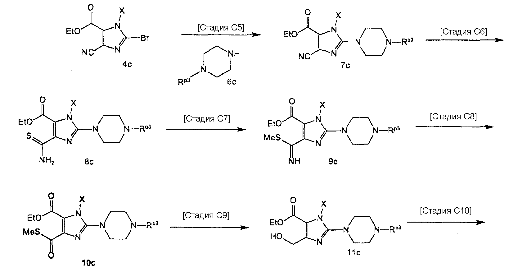 Группа заместителей С представляет собой группу, включающую гидроксильную группу, нитрогруппу, цианогруппу, атом галогена, С1-6 алкильную группу, С1-6 алкоксигруппу, С1-6 алкилтиогруппу, трифторметильную группу, группу, представленную формулой -NRС1-RC2 (где каждый из RС1 и RC2, независимо, представляет собой атом водорода или С1-6 алкильную группу), группу, представленную формулой -СО-RC3-RC4, и группу, представленную формулой -СН2-СО-RC3-RC4 (где RC3 представляет собой одинарную связь, атом кислорода или группу, представленную формулой -NRC5-; RC4 и RC5, каждый независимо, представляют собой атом водорода или С1-6 алкильную группу);