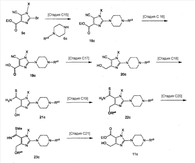[16] соединение по [14] или [15], или его соль, или гидрат, где группа заместителей С представляет собой группу, включающую цианогруппу, С1-6 алкоксигруппу, С2-7 алкоксикарбонильную группу и атом галогена;