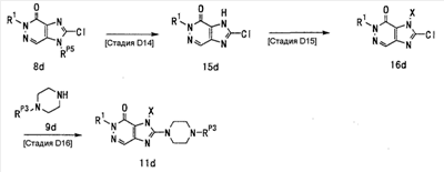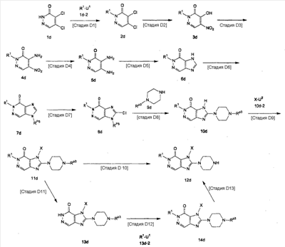Группа заместителей D представляет собой группу, включающую гидроксильную группу, цианогруппу, нитрогруппу, атом галогена, С1-6 алкильную группу, С1-6 алкоксигруппу, С1-6 алкилтиогруппу, трифторметильную группу, группу, представленную формулой -NRD1-RD2 (где RD1 и RD2, каждый независимо, представляют собой атом водорода или С1-6 алкильную группу), группу, представленную формулой -CO-RD3 (где RD3 представляет собой 4-8-членную гетероциклическую группу), и группу, представленную формулой -СО-RD4-RD5 (где RD4 представляет собой одинарную связь, атом кислорода или группу, представленную формулой -NRD6-; RD5 и RD6, каждый независимо, представляют собой атом водорода, С3-8 циклоалкильную группу или С1-6 алкильную группу));