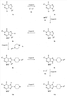 А2 и RA, каждый независимо, представляют собой атом водорода, атом галогена, цианогруппу, С1-6 алкильную группу, С3-8 циклоалкильную группу, С2-6 алкенильную группу, С2-6 алкинильную группу, С6-10 арильную группу, 5-10-членную гетероарильную группу, 4-8-членную гетероциклическую группу, 5-10-членный гетероарил С1-6 алкильную группу С6-10 арил С1-6 алкильную группу или С2-7 алкилкарбонильную группу;