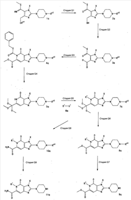 [9] соединение по любому из [1]-[5], или его соль, или гидрат, где Х представляет собой 3-метил-2-бутен-1-ильную группу, 2-бутин-1-ильную группу, бензильную группу или 2-хлорфенильную группу;