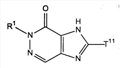 где Т1 представляет собой моноциклическую или бициклическую 4-12-членную гетероциклическую группу, содержащую один или два атома азота в кольце, и которая может иметь один или несколько заместителей;