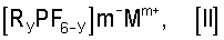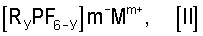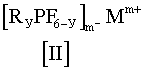 в которой Мm+ представляет собой моновалентный, дивалентный или тривалентный катион, причем Мm+=Li+, Na+, K+, Cs+, Ag+ и арсоний исключены; m=1, 2 или 3; Y=1, 2 или 3; лиганды R являются одинаковыми и R представляет собой перфторированную C1-C8-алкильную или арильную группу или R представляет собой частично фторированную C1-C8-алкильную или арильную группу, в которой некоторые атомы F или Н могут быть заменены хлором. 12. Соль общей формулы [II] по п.11, отличающаяся тем, что содержит Zn, Mg, Cu, аммоний, фосфоний, оксоний, сульфоний, тропилий, нитрильный катион, нитрозильный катион или катион трис(диалкиламино)карбония. 13. Способ получения соли общей формулы [II]
