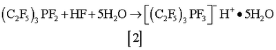 Недостатками данного способа являются токсичность и риск, связанный с обращением с исходным фтороводородом, и высокоэкзотермическое выделение тепла при прохождении реакции. Гексафторфосфорная кислота является коммерчески доступной как 65% по весу водный раствор. Этот раствор является неустойчивым при более высоких концентрациях. Чистая гексафторфосфорная кислота может быть получена в жидком диоксиде серы, но является неустойчивой при комнатной температуре (D.E.C. Colbridge, Phosphorus. An Outline of chemistry, Biochemistry and Technology (Second Edition) Elsevier Scientific Publishing Comp. Amsterdam-Oxford-New York, 1980). Низкая устойчивость высококонцентрированных растворов гексафторфосфорной кислоты ограничивает потенциальные возможности применения этой кислоты в качестве катализатора. Кроме того, координация протона с фосфорным гексафторид анионом снижает активность протона этой кислоты. Кроме того, целью настоящего изобретения является обеспечение соединениями фторфосфорной кислоты, которые не имеют недостатков предыдущего уровня техники. Эта цель достигается кислотой общей формулы [I]