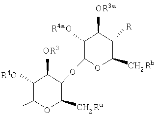 являются следующие: R3, R3a, R4 и R4a выбраны из группы, включающей Н, (С1-С6)-алкил, бензил и ацетил; R, Ra и Rb независимо выбраны из группы, включающей Н, -ОН, галоген, -NH2, азидогруппу, (С1-С6)-алкокси-(С1-С6)-алкоксил и -W-R30, где W означает -О-С(О)- или -O-C(O)-NR31-, R31 означает Н и R30 означает (C1-С6)-алкил, -С(O)-(С1-С4)-алкоксил-(С1-С6)-алкил, Т, Т-(С1-С6)-алкил, или Т или Т-(С1-С6)- алкил, где Т замещен одной или двумя галогенидными или (C1-С6)-алкильными группами. Предпочтительными заместителями R30 являются 2-фторфенил, 2,4-дифторфенил, 2,6-дихлорфенил, 2-метилфенил, 2-тиенилметил, 2-метоксикарбонилэтил, тиазол-2-илметил, 2-фурил, 2-метоксикарбонилбутил и фенил. Предпочтительными комбинациями R, Ra и Rb являются следующие: 1) R, Ra и Rb независимо означают -ОН или -O-C(O)-NH-R30, в особенности если Ra означает -ОН и R и Rb означают -O-C(O)-NH-R30 и R30 выбран из группы указанных выше предпочтительных заместителей, или если R и Ra означают -ОН и Rb означает -O-C(O)-NH-R30, где R30 означает 2-фторфенил, 2,4-дифторфенил, 2,6-дихлорфенил; 2) Ra означает -ОН, галоген, азидогруппу или (С1-С6) -алкокси-(С1-С6)-алкоксил, Rb означает Н, галоген, азидогруппу или (С1-С6)-алкокси-(С1-С6)-алкоксил и R означает -O-C(O)-NH-R30, в особенности соединения, в которых Ra означает -ОН, Rb означает Н и R30 означает 2-фторфенил; 3) R, Ra и Rb независимо означают -ОН или -O-C(O)-R30 и R30 означает (С1-С6)-алкил, Т, или Т, в качестве заместителей содержащий одну или две галогенидные или (С1-С6)-алкильные группы, в особенности соединения, в которых R означает -ОН и Ra и Rb означают -O-С(O)-R30, где R30 означает 2-фурил; и 4) R, Ra и Rb независимо означают -ОН или галоген. Тремя дополнительными классами предпочтительных соединений являются соединения, в которых окси-группа аномерного атома С1′ находится в бета-конфигурации, в которых окси-группа аномерного атома С2′ находится в бета-конфигурации, и в которых группа R находится в альфа-конфигурации. Предпочтительно, чтобы R1 был выбран из группы, включающей: