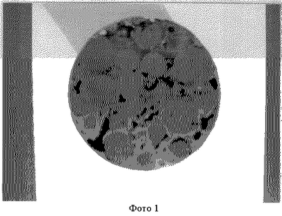 Способ проиллюстрирован фотографиями, где на фото №1 изображено среднее сечение получаемого расходуемого электрода; на фото 2 – боковая поверхность его.