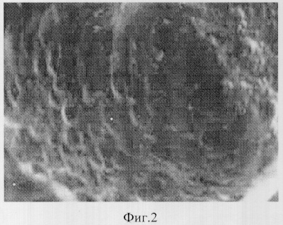 На фиг.1 представлено изображение гальванического фрактального покрытия железа, полученное при помощи оптического микроскопа, ×7. На фиг.2 представлено изображение гальванического фрактального покрытия железа, полученное при помощи растрового электронного микроскопа, ×92. Как видно из чертежей, при изменении масштаба от 7 до 92 раз морфология поверхности оставалась неизменной. Фрактальная размерность полученных покрытий D=2.93.