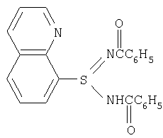 Изобретение относится к эматалированию алюминия и его сплавов и может найти применение в судостроение, машиностроении и производстве бытовой техники. Известен хромовобортный электролит эматалирования, содержащий хромовый ангидрид 100 г/л, борную кислоту 4 г/л (Розенбойм Г.Б. Возникновение эматаль-эффекта в хромовоборатных электролитах. Сб. “Новая технология гальванических покрытий изделий в судостроении и машиностроении”, Л., Судостроение 1974, с.58). Из-за высокой концентрации хромового ангидрида электролит опасен в экологическом отношении. К тому же получаемые в нем эматаль-покрытия имеют недостаточную защитную способность. Наиболее близким к данному предлагаемому изобретению по технической сущности и полученным результатам является разбавленный хромовоборатный электролит с добавкой органического вещества (авторское свидетельство СССР №1133313, C25D 11/06, приоритет 07.01.1983 г.). Названный электролит экологически гораздо менее опасен из-за пониженной концентрации хромового ангидрита (до 30 г/л), но эматалевые покрытия, осаждаемые из него, не обладают достаточным защитным действием для алюминия. Техническая задача, которую необходимо было решить в настоящем предлагаемом изобретении, состоит в том, чтобы повысить антикоррозийные свойства эматаль-покрытий на алюминии и его сплавах. Решение указанной задачи осуществляется за счет введения в хромовоборатный электролит эматалирования двух добавок органических веществ, а именно: N,N’- бис(бензоил)амидин-8-хинолинсульфиновой кислоты и 2-(n-бензил-фенил)-хиноксалина, имеющих соответственно следующее строение: