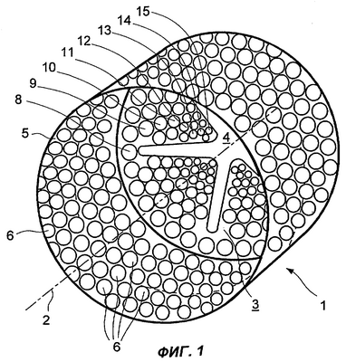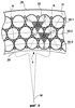 Этот пример ясно показывает, почему предлагаемая изобретением круговая, эллиптическая или овальная совокупность выступов имеет такие большие преимущества по сравнению с уровнем техники: образующиеся в точках пересечения Е, F, G большие треугольные участки 24 предоставляют место для размещения достаточно больших проточных отверстий 25 и даже для дополнительных углублений 27 для проточных отверстий 25 без перерезания контуров элементов 6 сводчатой структуры.