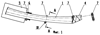 Пролетное строение 1 имеет криволинейную форму в плане с переменным межосевым расстоянием главных балок. Одна из главных балок 2 пролетного строения 1 имеет в плане форму радиусной кривой, а другая главная балка 3 имеет форму кривой, отличающуюся от первой. Пролетное строение 1, снабженное аванбеком 4, собирают на стапеле 5. Собранную часть пролетного строения 1 с помощью толкающих приспособлений 6 циклически надвигают на опоры моста 7. На опорах моста 7 в местах опирания главных балок 2 установлены стационарные накаточные устройства 8 и ограничители бокового перемещения 9. На опорах моста 7 в местах опирания главных балок 3 установлены подвижные в поперечном направлении накаточные устройства, выполненные в виде поперечных опорных балок 10, имеющих направляющие 11 и несущую поверхность 12, на которой по всей длине выложены салазки 13, на которые через скользун 14 и резиновую опорную часть установлена подвижная опора 16. На подвижной опоре 16 смонтирована шаровая опорная часть 17, на которую опирается опора скольжения, выполненная в виде верхней балансирной плиты 18, объединенной с нижним балансиром 19 тангенциальной опорной части 20. На верхнем балансире 21 тангенциальной опорной части 20 укреплена рама 22, состоящая из продольных балок 23 и поперечных балок 24, на консольных частях 25 которых смонтированы боковые упоры 26, взаимодействующие с нижним листом главной балки пролетного строения 1.