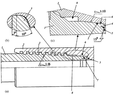 Конусность по радиальной образующей герметизирующего клина 1:10, более крутая, чем в известных соединениях, где конусность составляет 1:16.