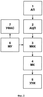 Сигнал, принятый акустическим преобразователем 1 (АП), показан на эпюре 2 (фиг.4). Преобразованный сигнал s1(t) попадает в аналого-цифровой преобразователь 2 (АЦП) (фиг.2), где подвергается дискретизации и цифровому кодированию.