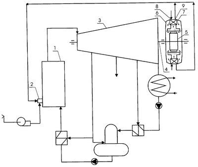 Таким образом, схема новой тепловой электрической станции позволяет возвращать теплоту обмоток и стали турбогенератора в котел, а также исключить систему водяного охлаждения циркуляционного воздуха генератора из схемы тепловой электрической станции, т.е. позволяет повысить экономичность тепловой электрической станции путем снижения потерь теплоты в окружающую среду и упрощения схемы станции.