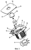фиг.1 изображает вид в аксонометрии эксгаустера со съемной передней крышкой, согласно изхобретению, в разобранном состоянии, где видны его элементы,