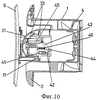 фиг.9 – вид в аксонометрии автоматически открывающегося эксгаустера в разобранном состоянии согласно третьему варианту осуществления изобретения, в котором устройство для осевого перемещения содержит термопривод,