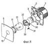 В другом варианте, показанном на фиг.8, устройство для осевого перемещения содержит реверсивный электродвигатель (30), расположенный внутри несущего кожуха (1) между крышкой (6) и основным электродвигателем (3). Вал электродвигателя (30) имеет присоединенный к нему резьбовой стержень (31), который входит в зацепление с резьбовым осевым отверстием (32) приводного кольца (33), передающего свое осевое перемещение передней крышке (6) через соединяющие их соединительные опоры (11).
