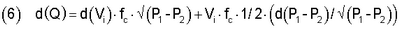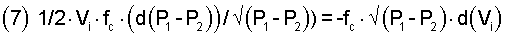 Пропускная способность или поток Q через общую площадь притока определяется произведением площади Vi притока, постоянной пропускной способностью или коэффициентом fc потока и квадратом перепада давления по площади притока, то есть: