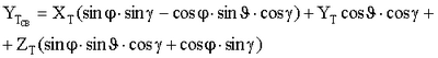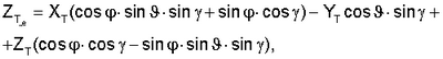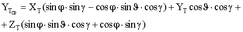 После этого координаты точки пересчитываются в связанную с самолетом систему координат: