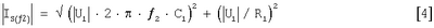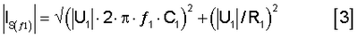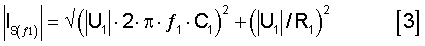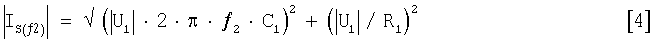 причем токи IS(f1) и IS(f2) за счет преобразования ток/напряжение и выпрямления пропорциональны U2(f1) и U2(f2) и, тем самым, известны. Следовательно, благодаря уравнениям [3] и [4] в распоряжении имеются два уравнения с двумя неизвестными, по которым можно вычислить C1 и R1.