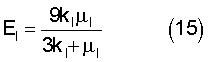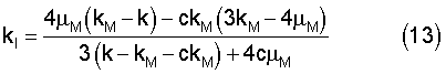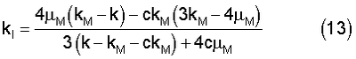 По формулам (12), (13) вычисляют модуль сдвига I и объемный модуль kI сферических микро- или наночастиц [Р.Кристенсен, Введение в механику композитов: Издательство МИР, 1982, с.50-51]