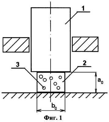 На фиг.2 представлена схема сжатия пуансоном 1 композиционного материала 2 с упругими сферическими включениями 3 после приложения силы F.