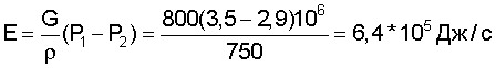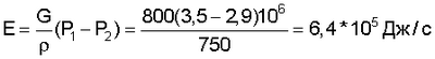 Е – расход энергии на течение потока среды через трубопровод или сосуд, Дж/с.