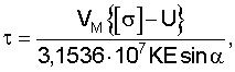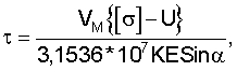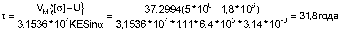 где VM – объем металла в стенках трубопровода или корпуса сосуда, м3; [ 3,1536*107 – количество секунд в году; K – коэффициент загрязненности потока (чистый поток K=1; загрязненный поток K>1); U – напряжение металла под действием избыточного внутреннего давления в трубопроводе или корпусе сосуда, Н/м2;
