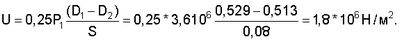 где VM – объем металла в стенке трубы или корпуса сосуда, м3; [ 3,1536·107 – количество секунд в году; K – коэффициент загрязненности потока (чистый поток K=1; загрязненный поток K>1); U – напряжение металла под действием избыточного внутреннего давления в трубопроводе или корпусе сосуда, Н/м2;