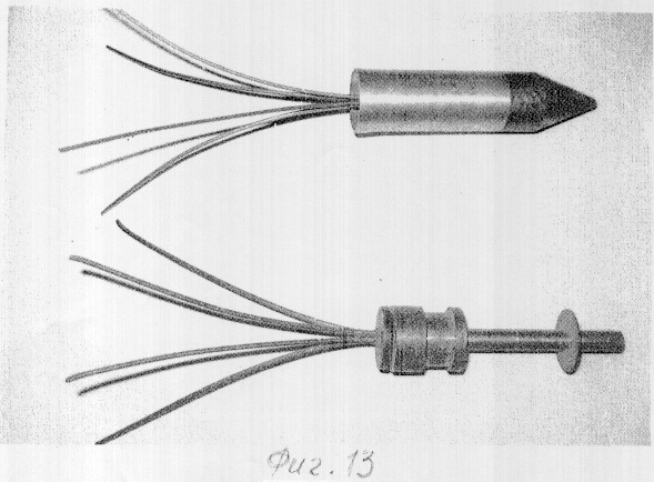 на фиг.13 – фотография вариантов метаемых тел с закрепленными на них изоляторами;