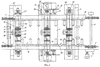 Измерительные датчики установлены на трех вертикальных рамах 13, 14, 15 и охватывают своей зоной чувствительности все четыре грани контролируемого контейнера 1. Наверху (над крышей) и внизу (под днищем измеряемого контейнера) на всех трех измерительных рамках 13, 14 и 15 крепятся неподвижно однотипные спектрометрические гамма-детекторы 17 в экранах-коллиматорах и детекторы быстрых и тепловых нейтронов 18. Наверху каждой рамки, по центру, установлена площадка (на фиг. она не выделена), на которой закреплен электродвигатель 19, через зубчатое колесо 20 связанный с зубчатыми колесами на барабанах 21 и 22 так, чтобы они поворачивались в разные стороны при работе электродвигателя 19. Управление двигателем 19 (его реверсирование) производится концевым выключателем 23. На барабанах 21 и 22 нанесены двухзаходные ручейки для укладки грузоподъемных тросов 24, которые поднимают и опускают грузонесущие площадки 25, на которых смонтированы коллимированные гамма-спектрометрические детекторы 26 и детекторы быстрых и тепловых нейтронов 27. Площадки 25 соединяются с помощью тросов 24 с барабанами 21 и 22 через систему блоков 28.