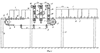 Устройство контроля контейнеров 1 содержит несущую раму 2, приподнятую над поверхностью земли на стойках 3 и удаленную от окружающих предметов. На раме 2 установлены две замкнутые цепные передачи (цепи) 4, совершающие поступательные перемещения с помощью звездочек 5, которые вращаются через редуктор 6 от двигателя 7. На определенном расстоянии L1, превышающем длину контейнера, цепи жестко связаны тягами 8, на которых закреплены кулаки 9 с возможностью их поворота, если на них воздействует сила (вес) вертикально вниз (на фиг. это не показано). Для выполнения контроля контейнер 1 устанавливают на ролики 10 перед первой измерительной рамкой. Можно их устанавливать последовательно и больше, количество будет определяться длиной цепи 4 и мощностью силового двигателя 7. Каждый контейнеры, прошедший контроль, выталкивается кулаками 9 на накопительную площадку с роликовым конвейером 12. Синхронное перемещение цепей обеспечивается не только связующими тягами 8, но и звездочками 5, жестко закрепленными с двух сторон на валах 11. Рама 2 и закрепленные на ней ролики 10 имеют слабый наклон (2-3°), с подъемом в сторону перемещения, чтобы контейнеры 1 принудительно перемещались с постоянной скоростью в процессе выполнении измерений.
