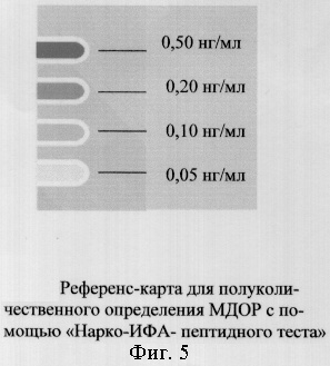 8. Набор реагентов по п.2, отличающийся тем, что содержит отрицательный контрольный образец, представляющий собой лиофилизированный порошок синтетического МДОР пептида, при разведении которого получается 1 мл раствора с концентрацией, характеризующей здоровых лиц, не употребляющих наркотические средства.