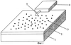Затем на поверхность вязкой жидкости наносятся оптически инородные твердые частицы 3, нерастворимые в используемой вязкой жидкости. Удобно наносить частицы с помощью пульверизатора из взвеси частиц в легко испаряющейся жидкости. Количество наносимых частиц подбирается таким, чтобы обеспечить их визуальное разделение на регистрируемых изображениях. С целью увеличения контрастности изображения частиц, целесообразно использовать частицы кристаллофосфора. Типичный размер частиц кристаллофосфора 3-5 мкм, при этом на поверхности присутствуют как отдельные частицы, так и их конгломераты, образованные на стадии нанесения частиц.