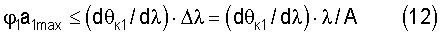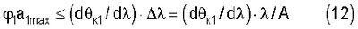При реализации способа с помощью устройства, представленного на фиг.5, спектральная фильтрация осуществляется следующим образом. Пусть требуется выделить (отфильтровать) из полихроматического пучка монохроматический луч, например, с длиной волны m=5,601 мкм. По соотношениям (1) и (2) рассчитывают к1( )=45,995° и к2( )=74,062°. Задаются требуемым значением  или . Для выбранной длины волны m рассчитывают d к1( m)/d и d к2( m)/d и определяют МАХ по следующему выражению: мах (d к/d )· =(d к/d )· /А, где d к/d равно меньшему по модулю значению из величин d 1к/d и d 2к/d .