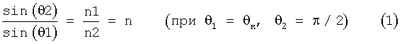 В случае, если величина угла падения 1 будет меньше к луч выйдет из первой среды и будет распространяться в среде с показателем преломления n2 под углом 2 к поверхности раздела этих сред.