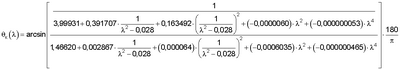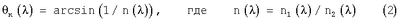 После подстановки численных коэффициентов, соответствующих оптическим характеристикам, выбранных для анализа пар сред, выражение (2) для расчета критических углов ПВО, например, для пары Ge/BaF2 примет следующий вид: