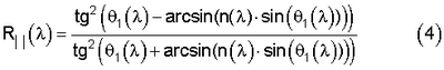 где R – коэффициент отражения от границы раздела двух сред для лучей, у которых вектор поляризации перпендикулярен плоскости падения; R|| – коэффициент отражения от границы раздела двух сред для лучей, у которых вектор поляризации параллелен плоскости падения; R – коэффициент отражения для неполяризованных лучей.