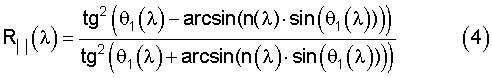 Наиболее резкая зависимость коэффициента отражения от угла падения имеет место для R||( ) (p – компоненты поляризации). Поэтому для увеличения разрешающей способности в устройствах, реализующих способ, целесообразно устанавливать на входе поляроид, выделяющий из исследуемого излучения р – компоненту поляризации.