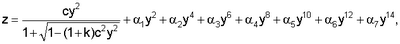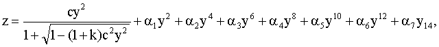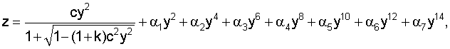 – оптическая система содержит, по меньшей мере, один цилиндрический преломляющий оптический элемент, который имеет, по меньшей мере, одну поверхность с некруговым профилем, задаваемую конической постоянной и коэффициентами при высших степенях координаты на поверхности