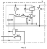 Формирователь 3 сигналов самоконтроля предназначен для оперативной проверки работоспособности всего устройства по одной команде, подаваемой путем нажатия и отпускания кнопки 7, выполнен по схеме фиг.3 и содержит электромагнитное реле 34, конденсатор 35, резистор 36 и транзисторный ключ, выполненный на транзисторе 37 и резисторах 38, 39 с нагрузкой в виде электромагнитного реле 40, обмотка которого зашунтирована обратно включенным диодом 41. При этом начало обмотки реле 34 является входом управления данного формирователя 3, конец обмотки соединен с первыми выводами конденсатора 28, резистора 39, с эмиттером транзистора 37, с общей шиной питания, с первым входом данного формирователя 3 и через замкнутые размыкающий и переключающий контакты первой контактной группы реле 34 – с первым выходом данного формирователя 3. Второй вывод конденсатора 35 через замкнутые переключающий и размыкающий контакты реле 34 и резистор 38 соединен с вторым выводом резистора 39 и базой транзистора 37, коллектор которого через обмотку реле 40 соединен непосредственно с первым выводом резистора 36, с вторым входом данного формирователя 3, а через размыкающий контакт 40.1 реле 40 – со вторым выходом данного формирователя 3. Второй вывод резистора 36 соединен с замыкающим контактом второй контактной группы реле 34.