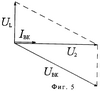 Предлагаемый выпрямитель трехфазного тока (фиг.2) с дополнительно введенными шестью фильтровыми реакторами, шестью однофазными мостовыми ячейками на полностью управляемых вентилях, шестью сглаживающими конденсаторами работает следующим образом. Любым известным методом синусоидальной широтно-импульсной модуляции формируется напряжение на входе переменного тока вентильного комплекта активного выпрямителя, первая гармоника которого обозначена как UBK на фиг.5 на векторной диаграмме напряжений и токов, действующих в цепи любой вторичной обмотки трансформаторов Т-1 и Т-2. Величина и фаза вектора этого напряжения по отношению к вектору напряжения вторичной обмотки трансформатора U2 устанавливаются такими, чтобы вектор первой гармоники широтно-модулированного тока IBK во вторичной обмотке трансформатора, ортогональный вектору напряжения первой гармоники напряжения UL на фильтровом реакторе, совпадал по фазе с вектором напряжения вторичной обмотки трансформатора U2, как показано на фиг.5. Тогда каждый активный выпрямитель будет работать практически с синусоидальным входным током и постоянным выходным напряжением, сглаженным сглаживающим конденсатором на выходе активного выпрямителя. При опережающей фазе формируемого вектора напряжения UBK на входе переменного тока вентильного комплекта активного выпрямителя, как показано на фиг.6, активный выпрямитель переходит в режим рекуперации, т.е. в режим автономного инвертора напряжения. В результате предлагаемый выпрямитель трехфазного тока также будет работать с практически синусоидальными токами во всех трех фазах как в режиме выпрямления, так и в режиме рекуперации.