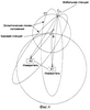Для устранения неоднозначности расположения МС на окружности необходимо провести аналогичные измерения во второй точке при перемещении измерителя. Повторные измерения позволят построить вторую гиперболическую (эллиптическую) линию положения, при этом совместное пересечение трех линий положения – радиальной и двух гиперболических (эллиптических) линий положения будет только в одной точке, что позволяет устранить неоднозначность в определении координат МС. На фиг.4 показаны рассматриваемые линии положения на примере эллиптических линий положения и единственная точка их пересечения, определяющая координаты МС. При этом точками А1 и А2 обозначены точки стояния передвигающегося измерителя