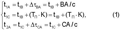 где К – целое число периодов сигнала в интервале времени t1C-t1B; с – скорость распространения радиоволн.