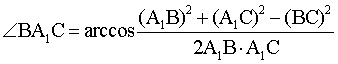 Рассмотрим треугольники A1BC и А1ВС* (при этом очевидно, что все стороны данного треугольника известны), угол BA1C, определяющий угол на МС, может быть найден на основе теоремы косинусов (и соответственно BA1C*), аналогично находим угол BA2C (ZBA2C*). Из фиг.5 видно, что данные углы однозначно определяют координаты МС.