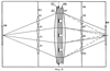 Получить параллельные пучки для большого числа витков может оказаться технически сложной задачей. Для ее решения в оптический тракт может быть включена оптическая система, состоящая, например, из нескольких пар линза – переворачивающая призма. Переворачивающие призмы компенсируют вертикальный переворот изображений в линзах, а при четном числе линз устраняется и горизонтальный переворот. Для тракта на фиг.1 линзы должны размещаться с двух сторон от основной призмы. Внутри кольца линзы оптической системы должны иметь фокусные расстояния и размещаться так, чтобы совпали плоскости их входного и выходного изображений и совпали размеры изображений. Кроме того, с ними должны совпадать плоскости входных и выходных изображений оптических систем 9 и 10.